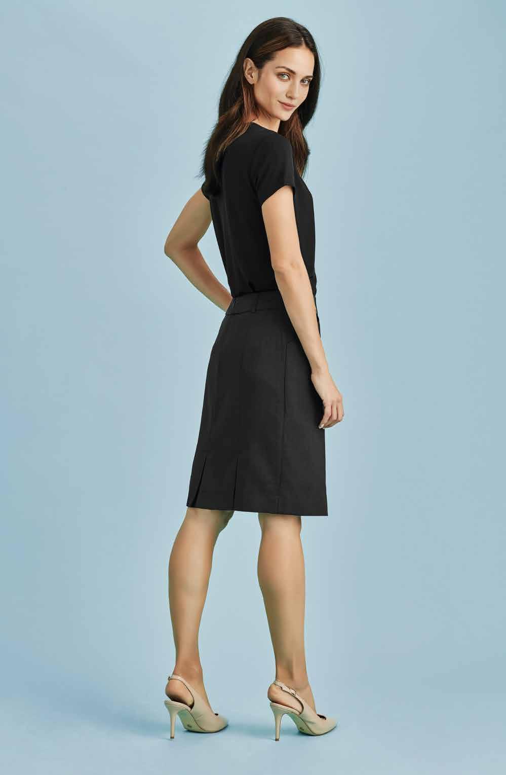 FEATURES Designer style, asymmetrical mock-wrap front • Invisible centre back zip, deep side splits