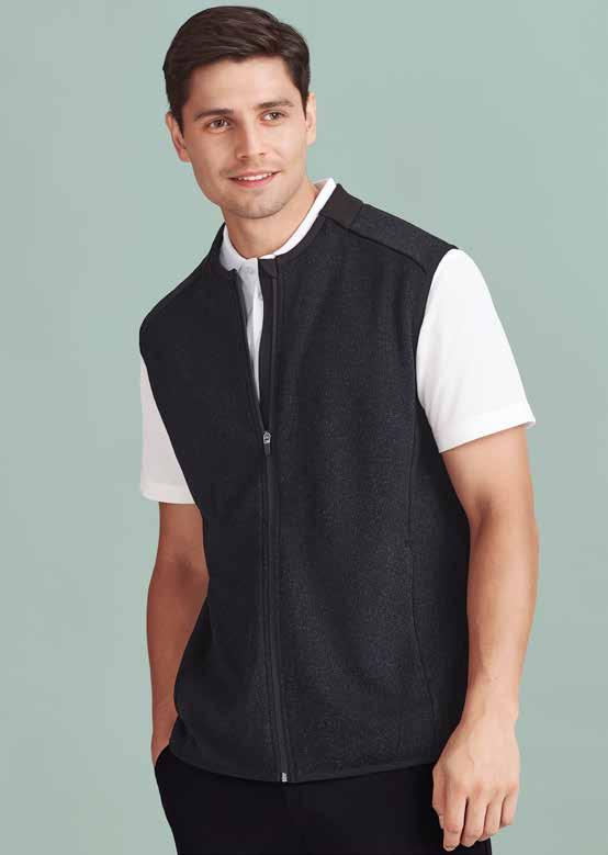 FEATURES Contrast shoulder panels and piping • Matching knitted collar • Back and underarm mesh panel inserts for breathability • Mens style includes loose pocket