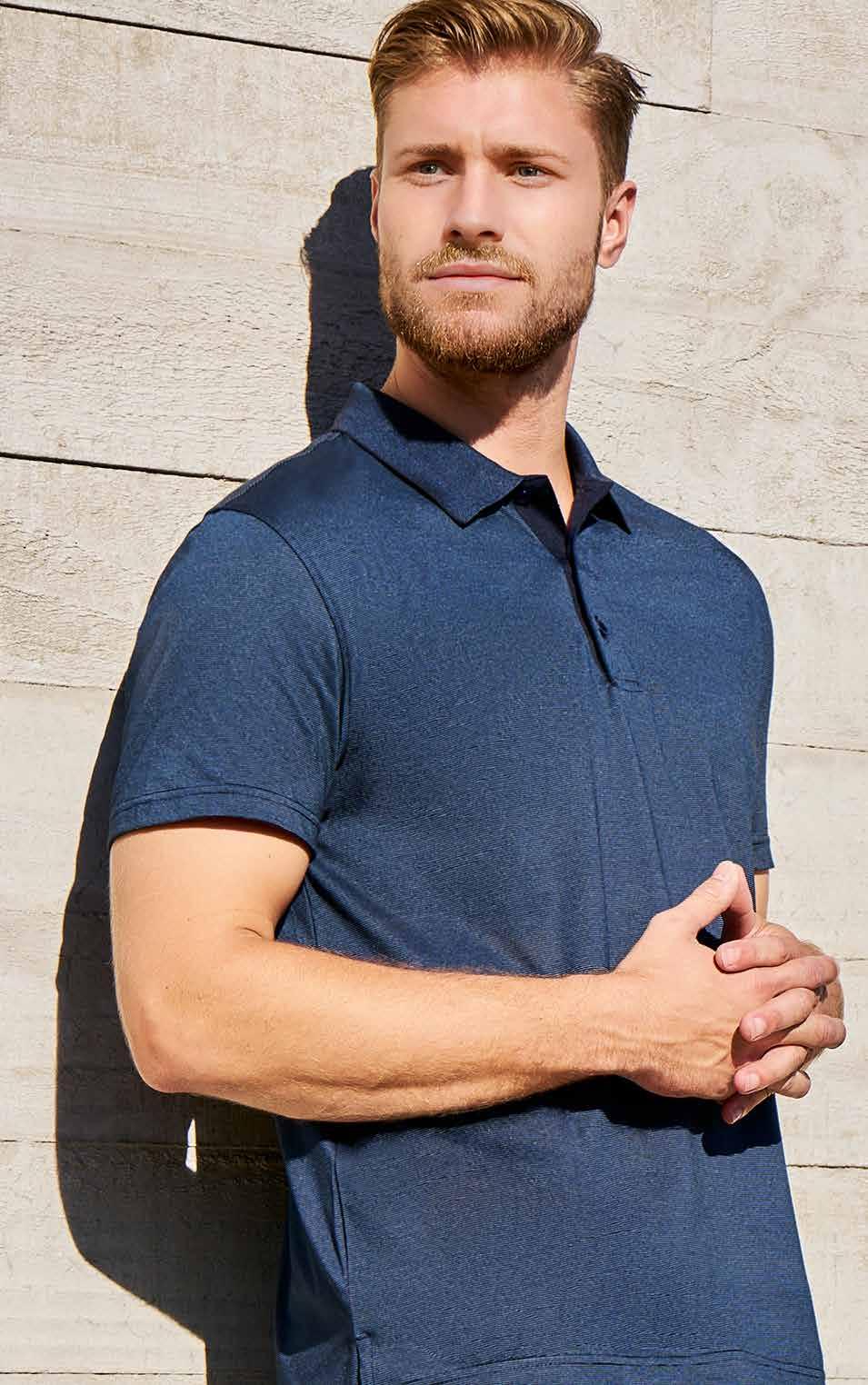 Elevated and neatly finished, this space-dye effect polo offers versatile appeal. Bringing an eco-friendly refined mood to any situation; from to everyday to sportswear.