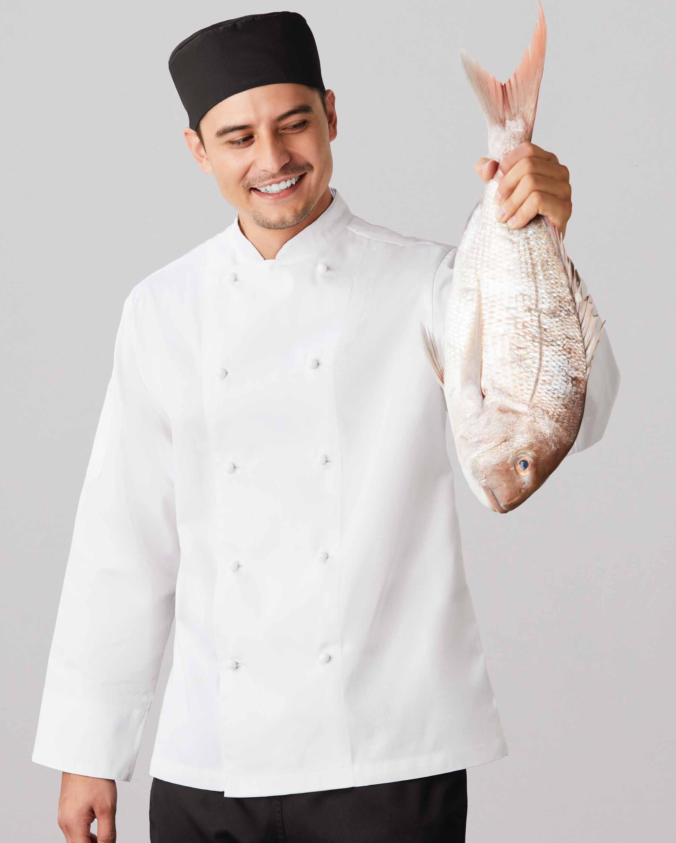 Not too heavy, not too light, a classic double-breasted, long sleeve chef jacket is the timeless choice for all culinary professionals.