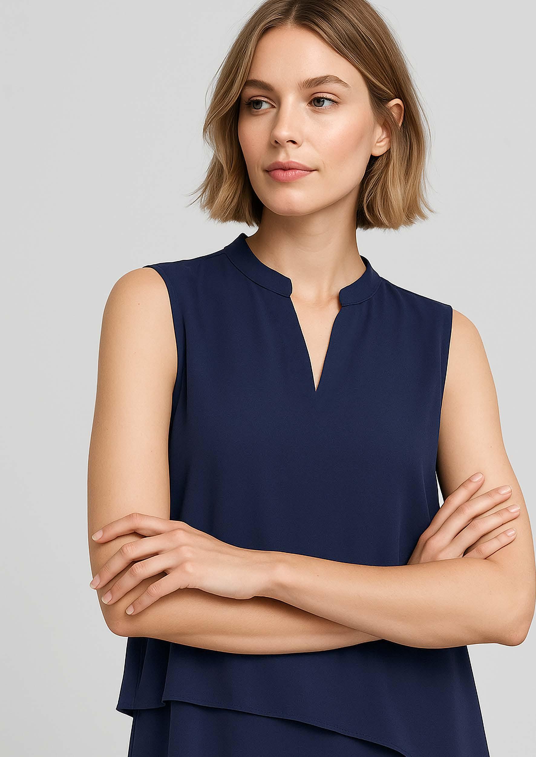 RB260LN WOMENS SLEEVELESS LAYERED BLOUSE