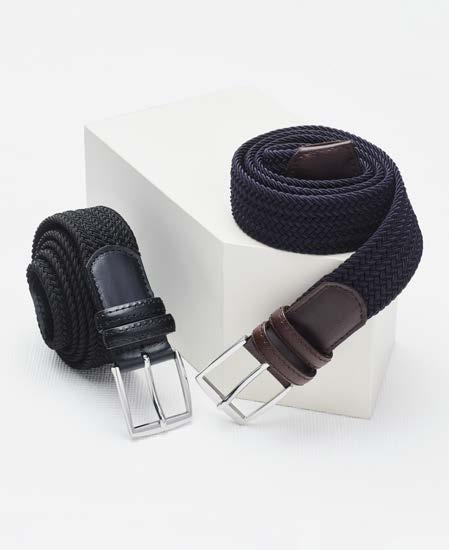 Casual Belt Braided stretch belt, with leather trim and metal hardware.