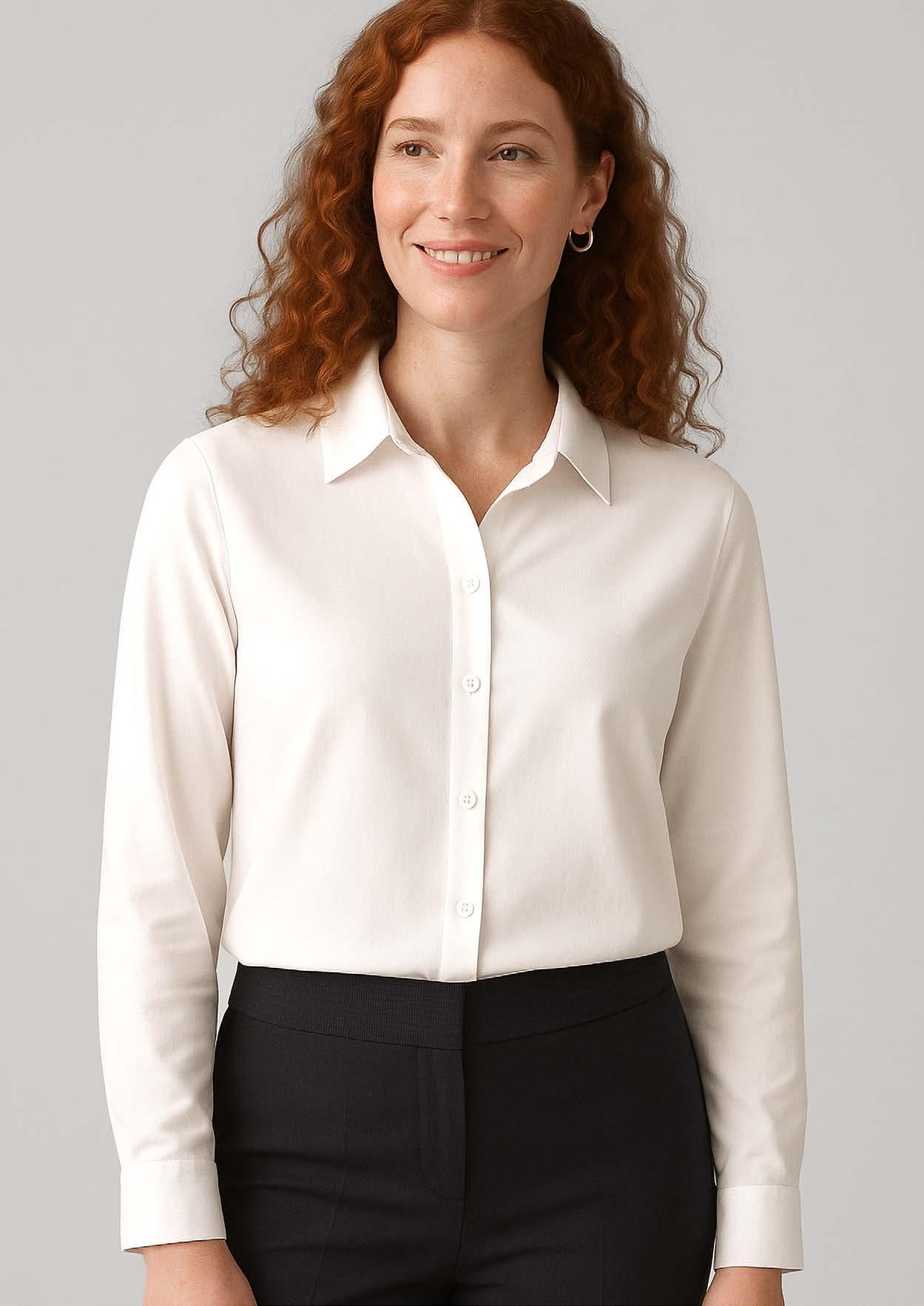A lightweight fabric with high drape and soft hand feel. Easy-care and durable, the Juliette blouse also features an inverted back pleat tuck.