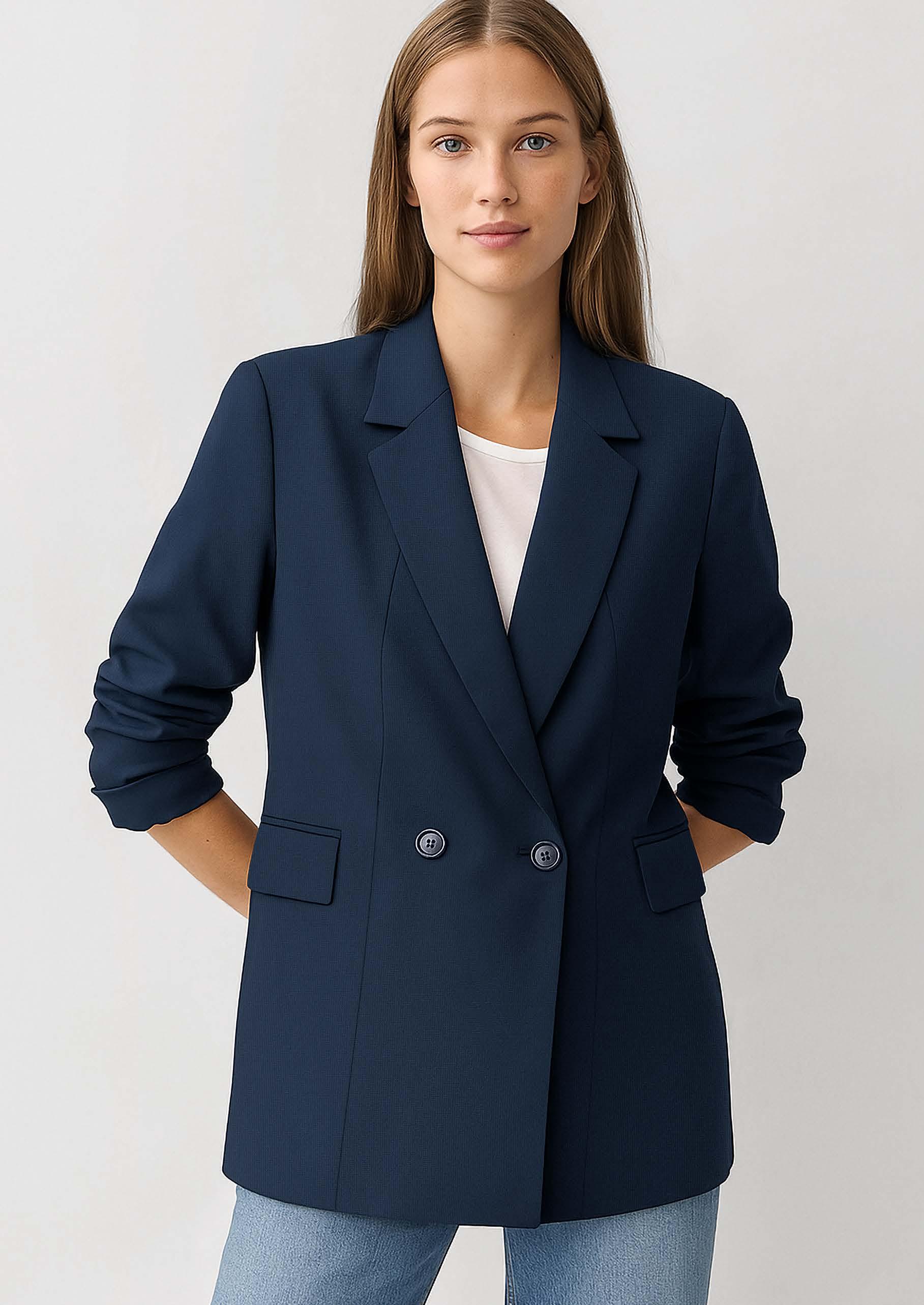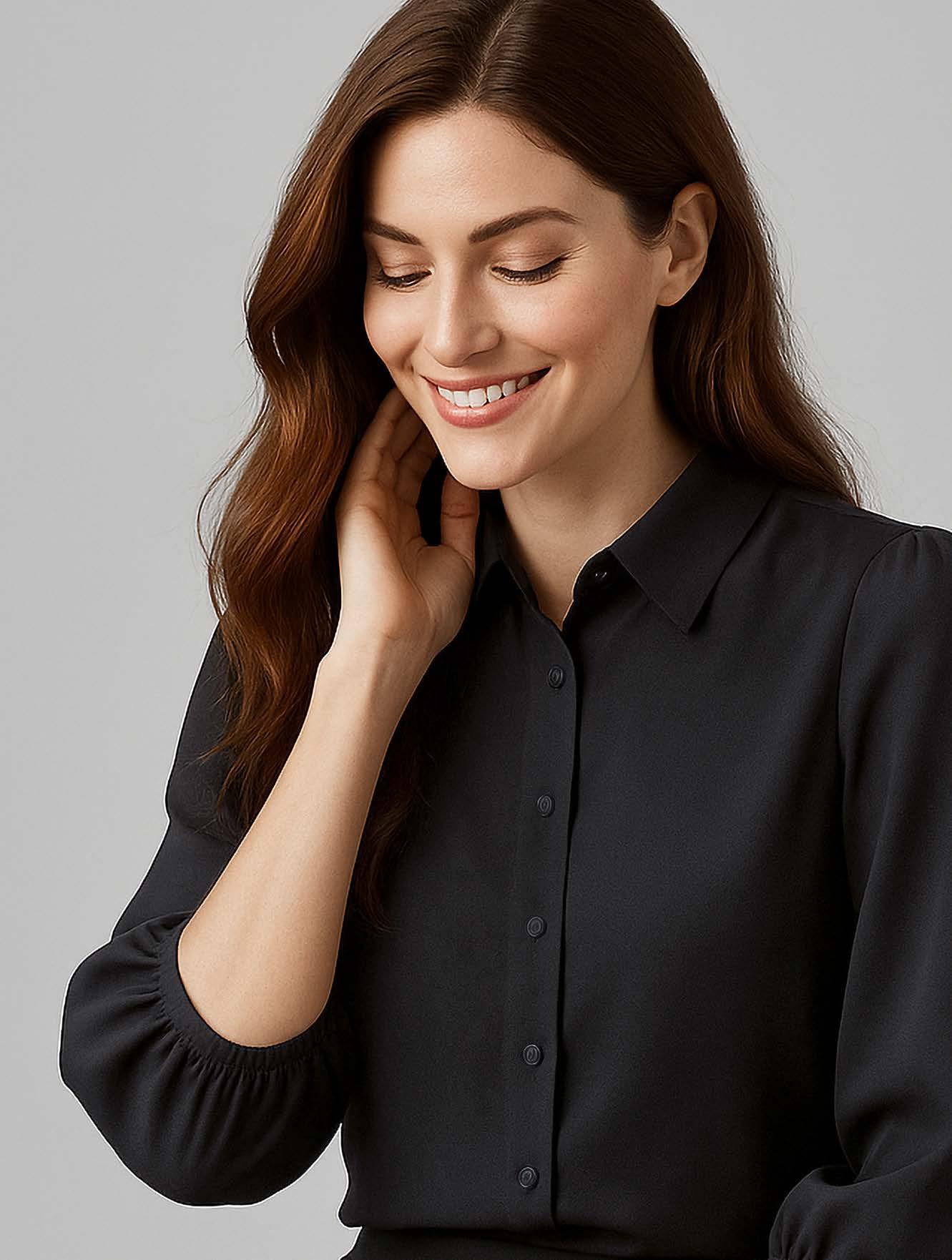 A versatile sleeve length and design. Soft elastic cuffs allow you to wear sleeves pushed up for a billowing sleeve effect or pulled down for a softer drape above the wrist.
