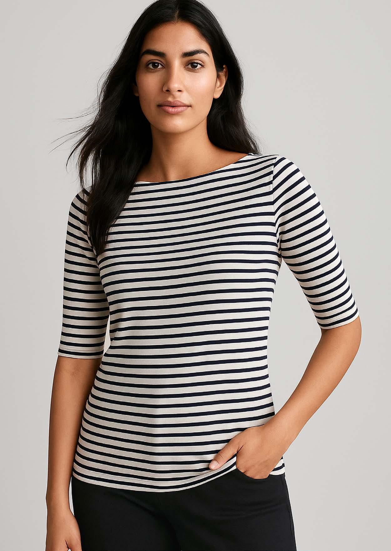 Impeccably cut from a soft Viscose/Nylon blend, with elegant boat neck detailing. A versatile wardrobe essential that’s perfect for layering.