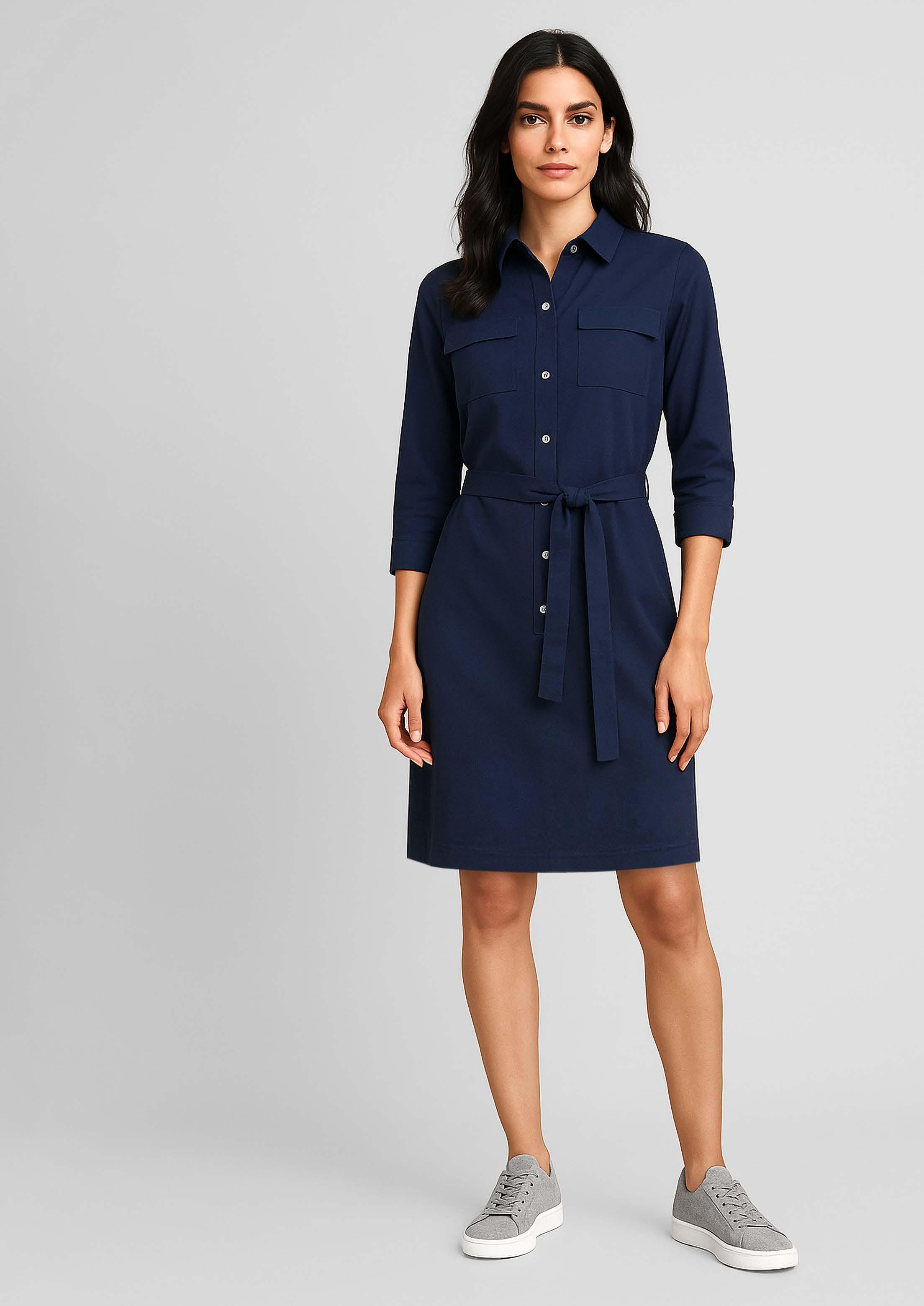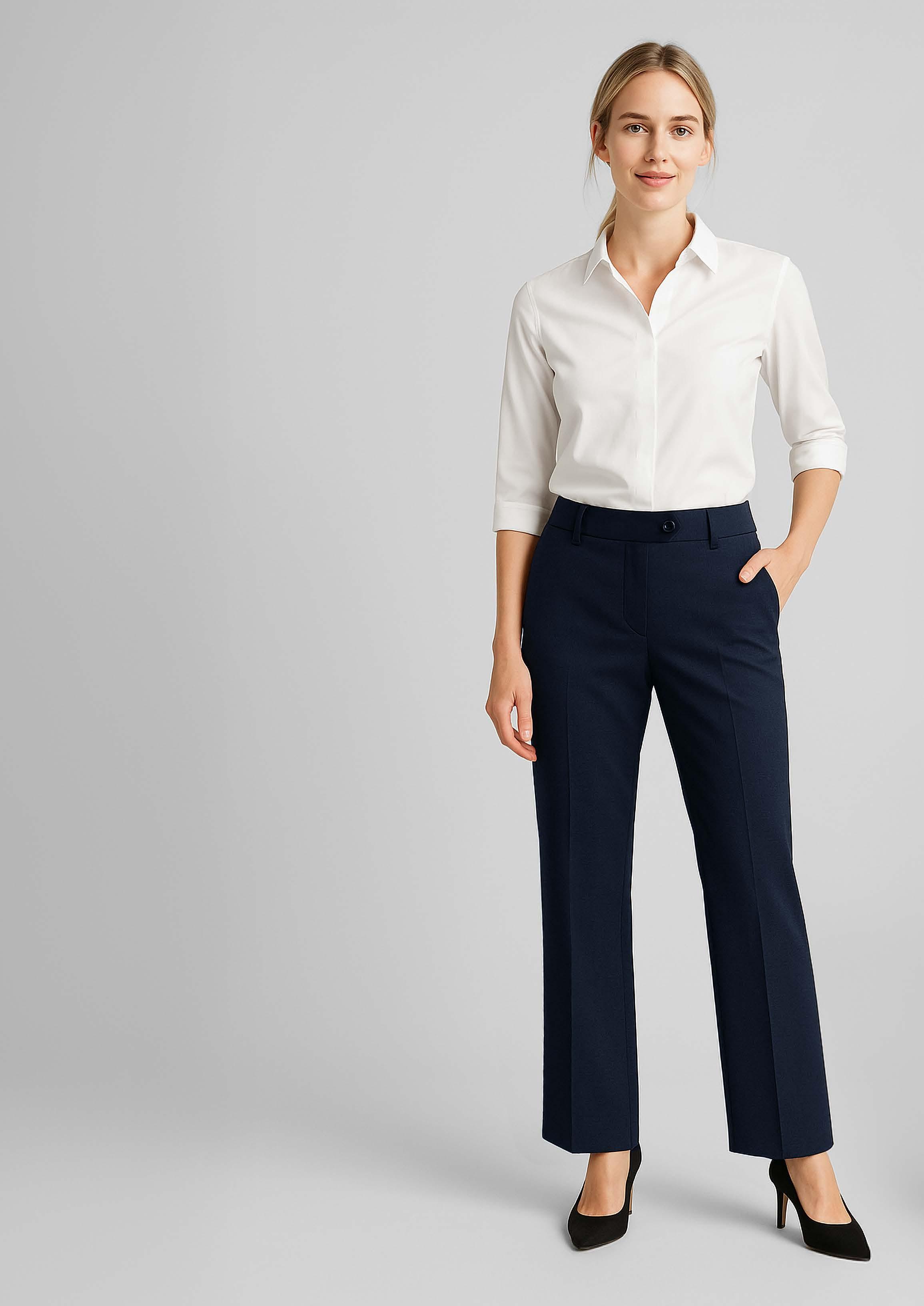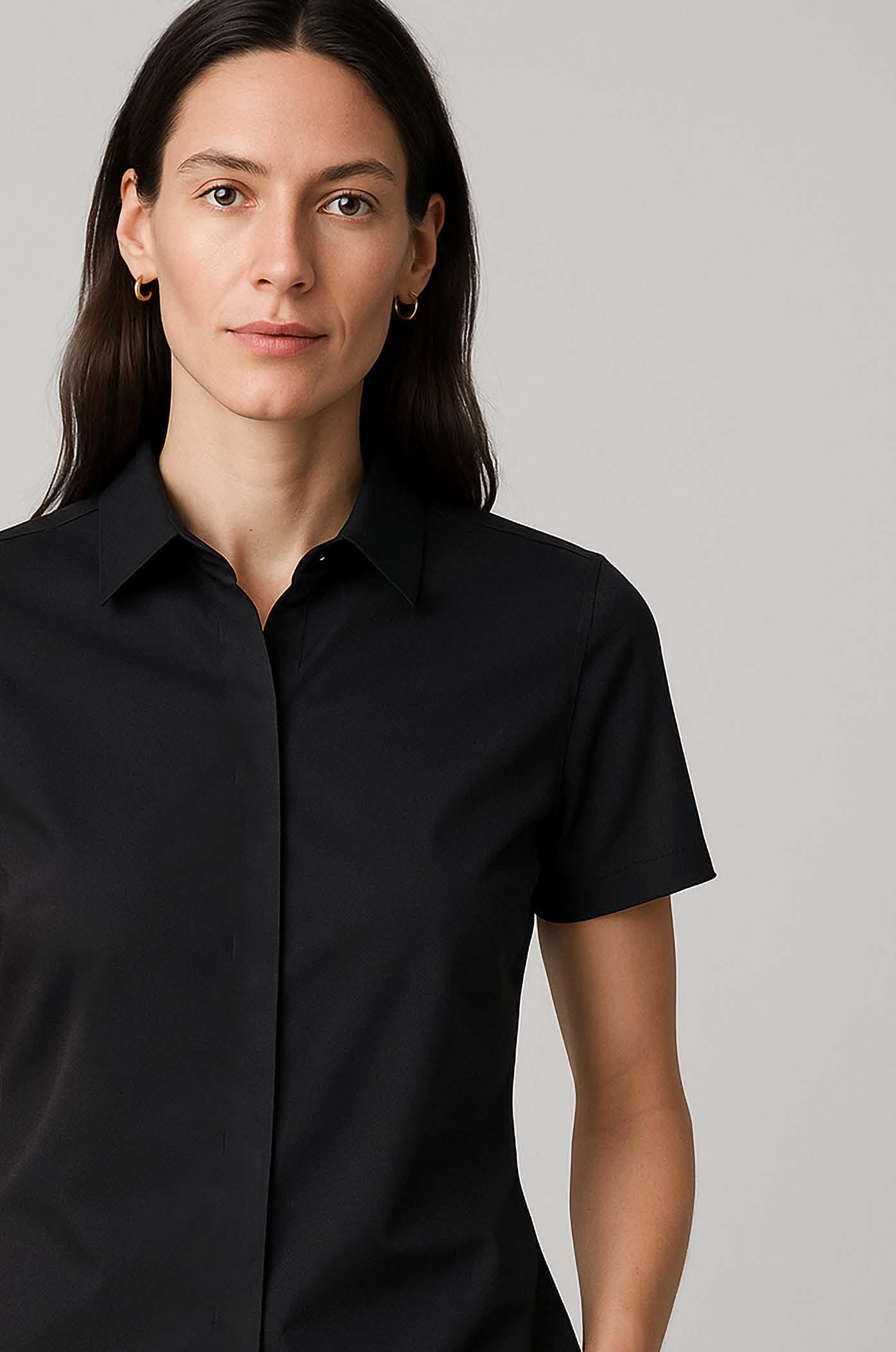 Semi-fitted style, with a relaxed fit through the body. Concealed front placket, dart detailing and secret bust button located inside the placket.