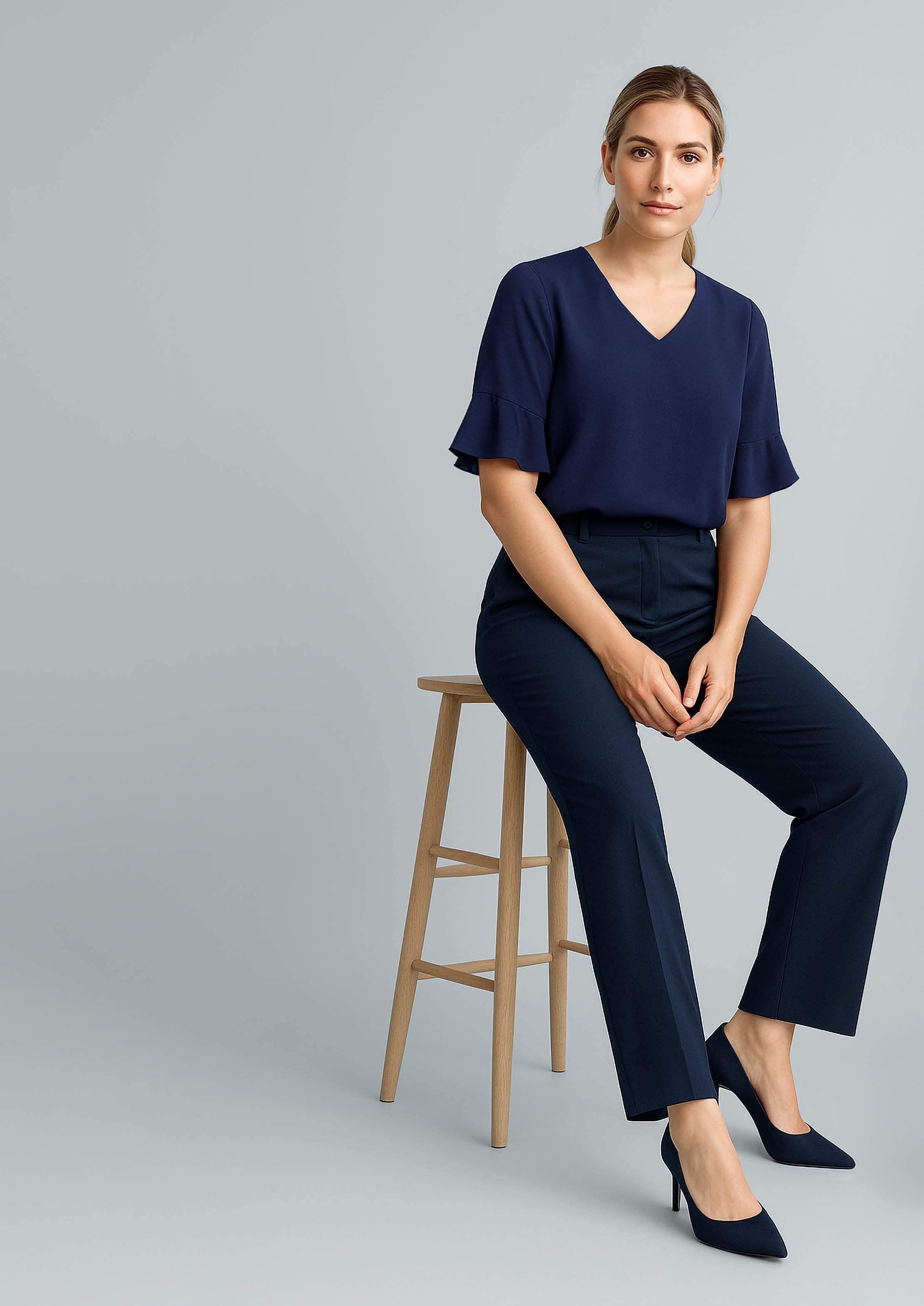 RB966LS WOMENS FLUTED SLEEVE BLOUSE 100% Polyester