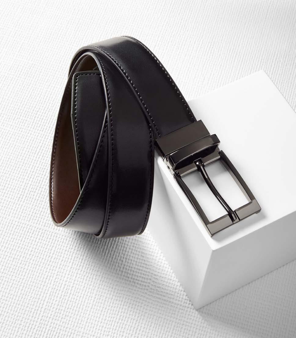 Casual Belt Braided stretch belt, with leather trim and metal hardware.