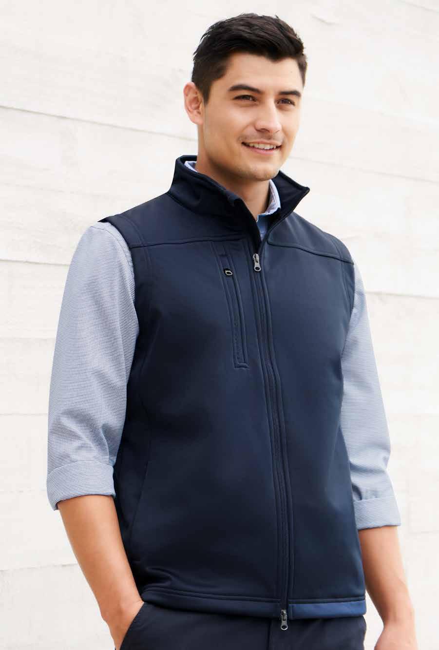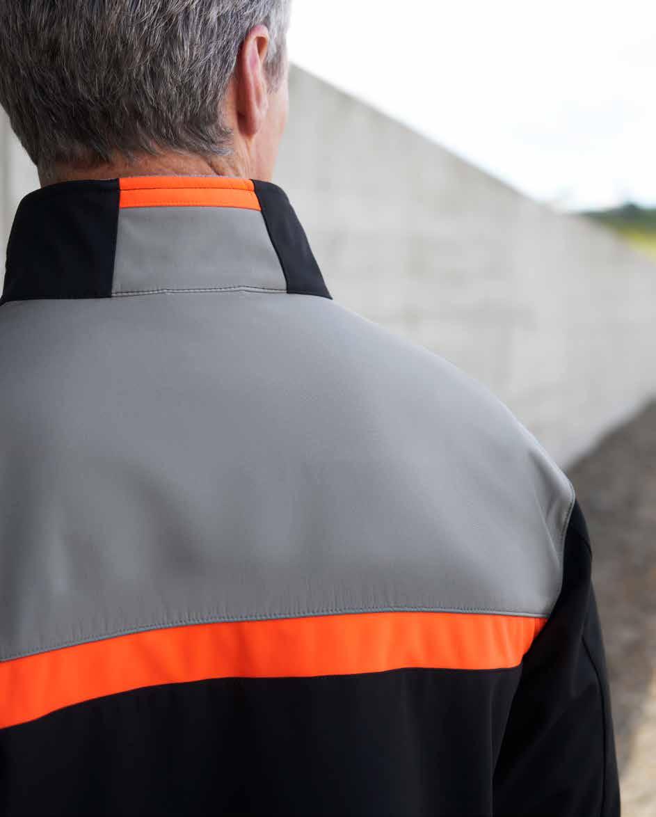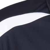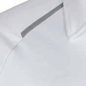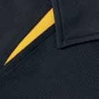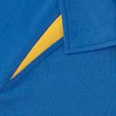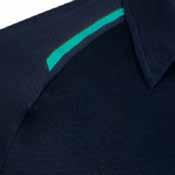 FEATURES Contrast shoulder panels and piping • Matching knitted collar • Back and underarm mesh panel inserts for breathability • Mens style includes loose pocket
