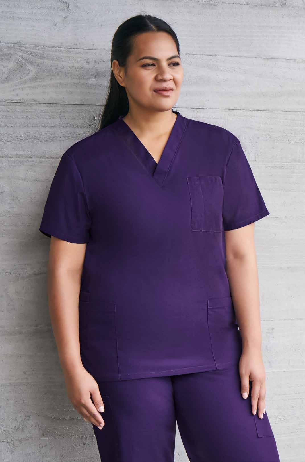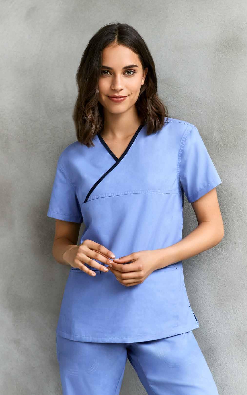 Contrast crossover style can create task or workplace identity and adds a point of difference. A natural stretch in the fabric allows for ease of movement and resists creasing.