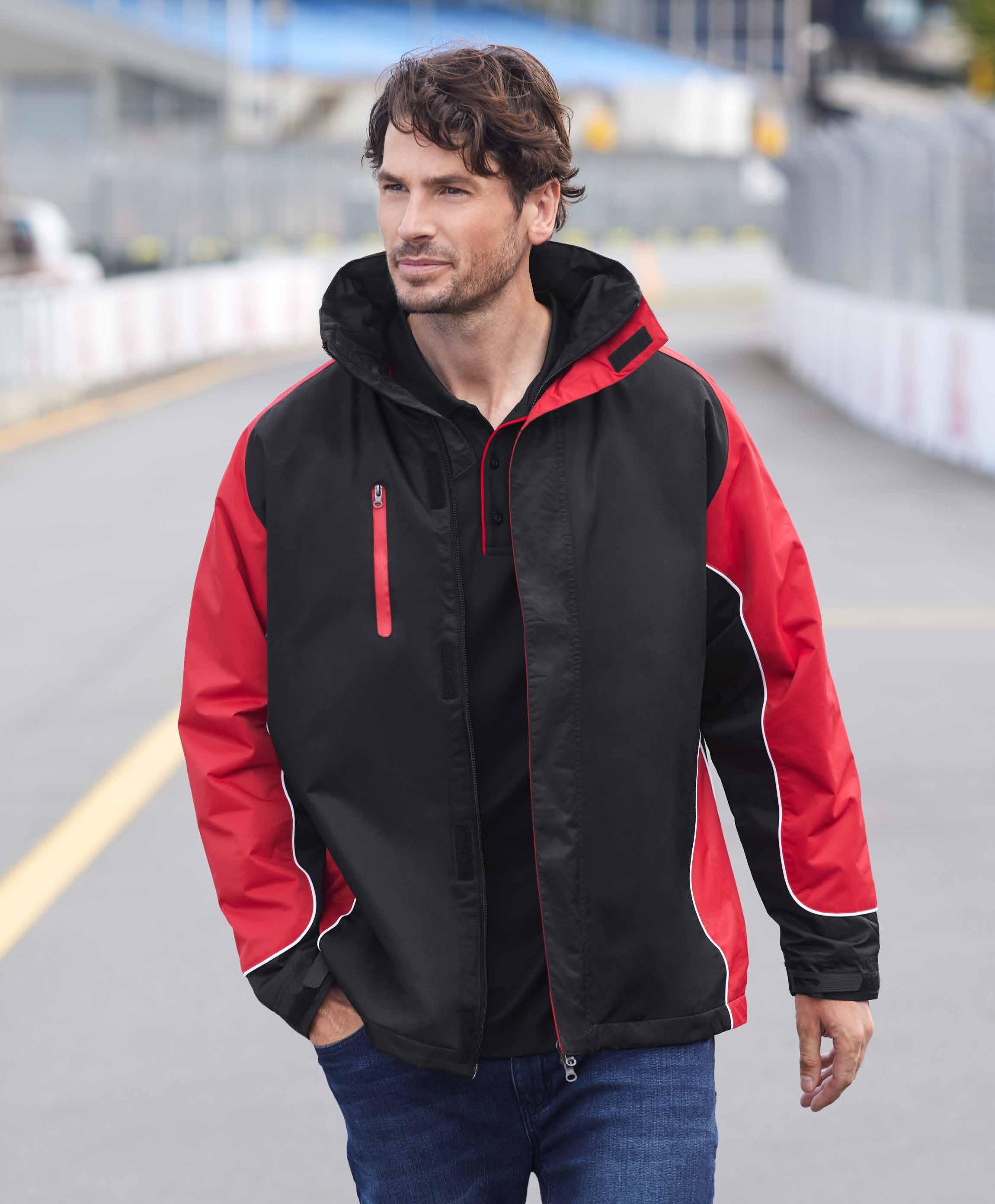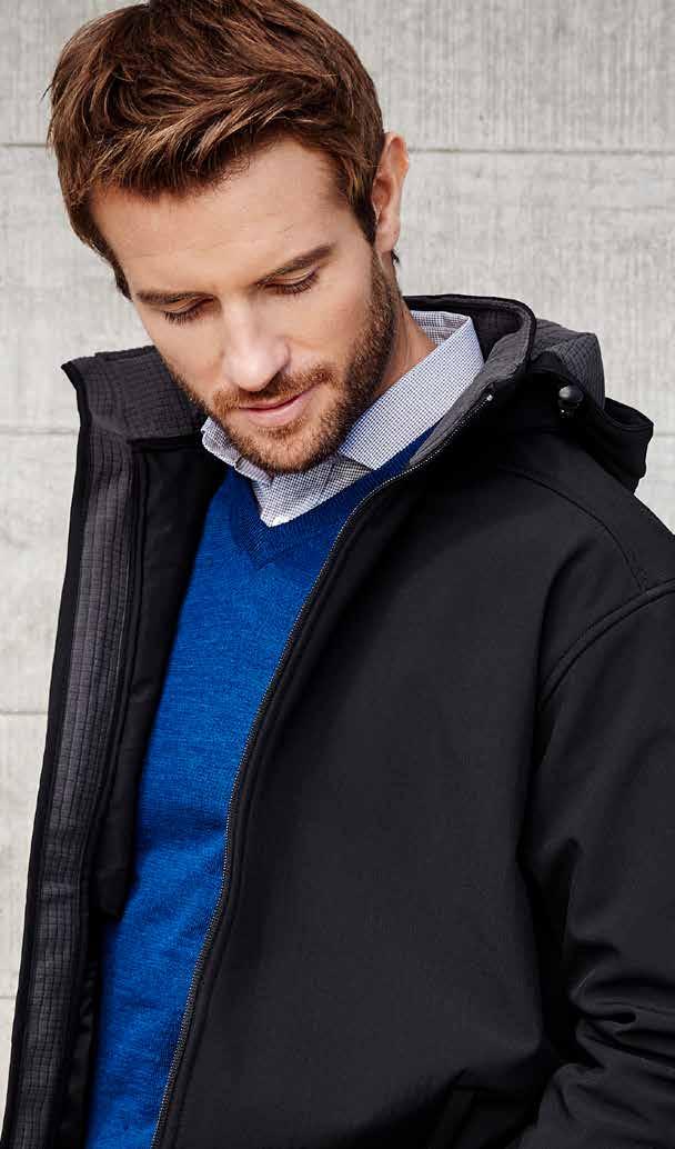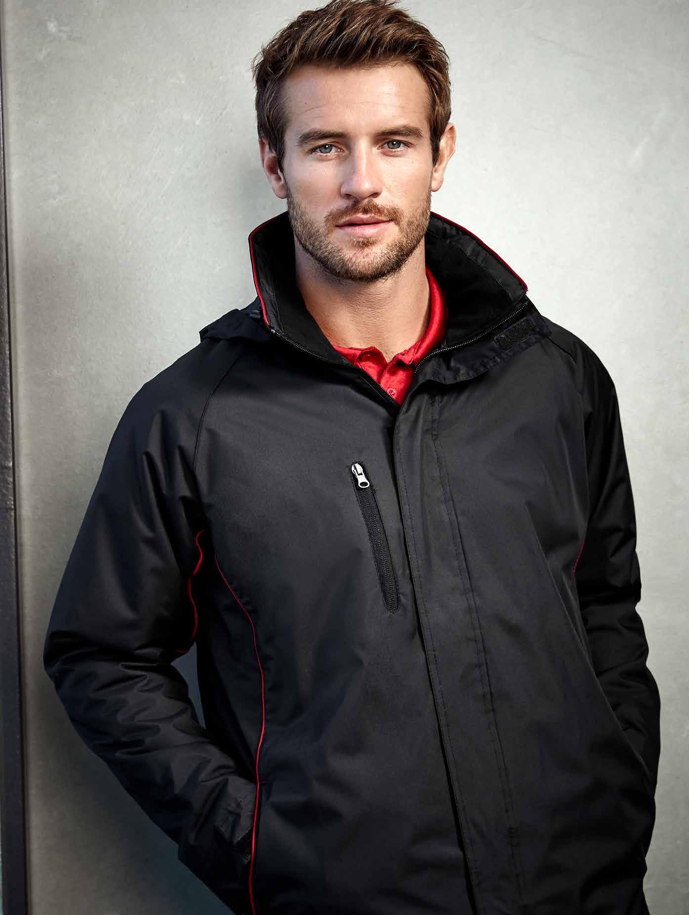 FEATURES Matching knitted collar • Contrast sleeve and side panels • Mens style includes loose pocket