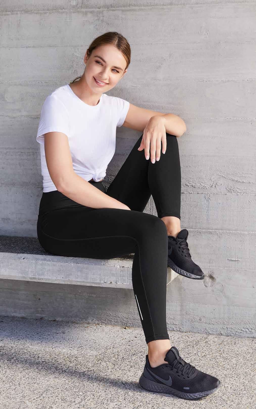 FEATURES Full length style with refined fold-over waist • Central stride split for ease of movement