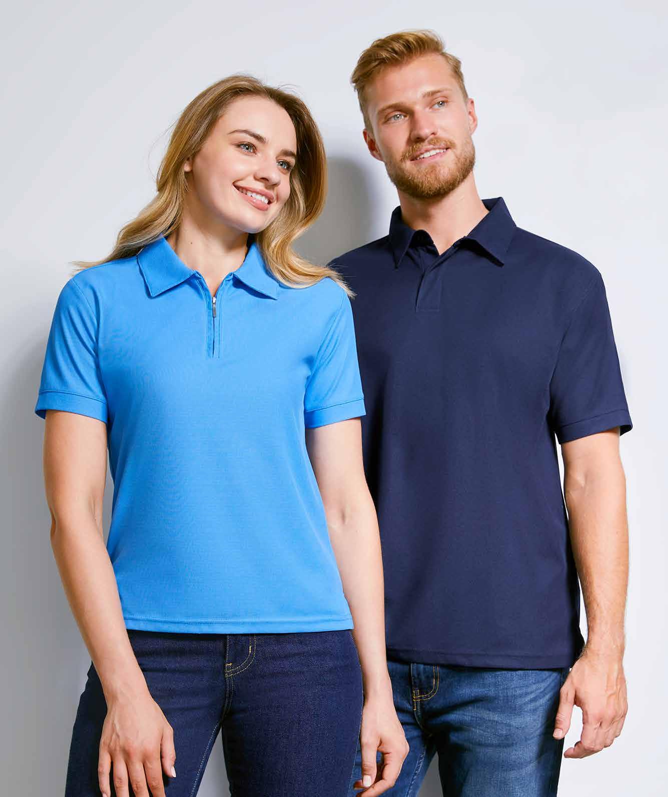 A modern look polo that’s great for all seasons. Understated side seam and shoulder details add visual interest whilst ensuring your logo is the hero.