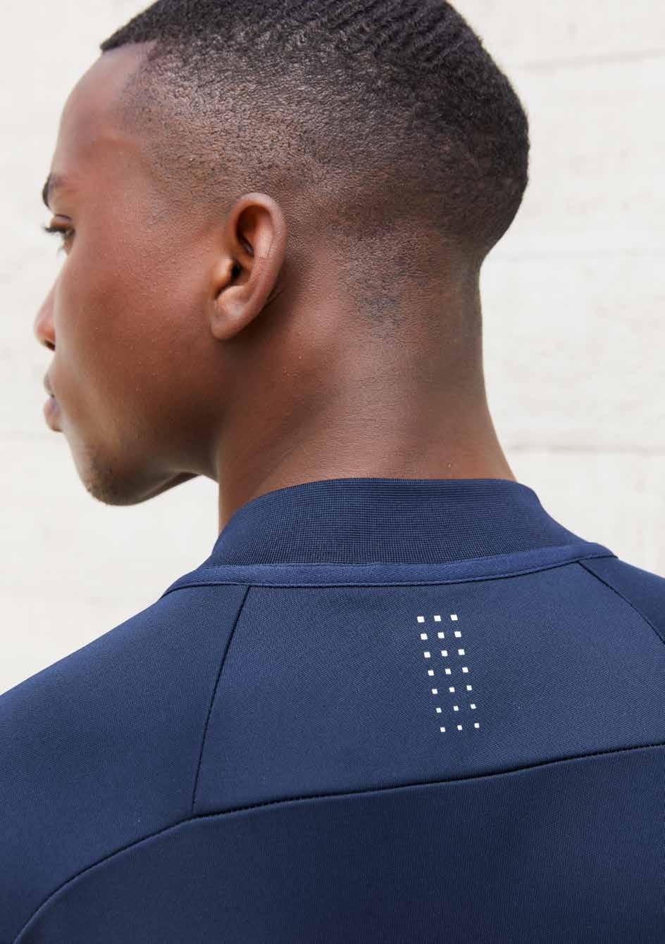 FEATURES Silver reflective trims • Dynamic design with bold colour contrast • Mesh panels for greater ventilation • Knitted stripe collar • Mens style includes loose pocket