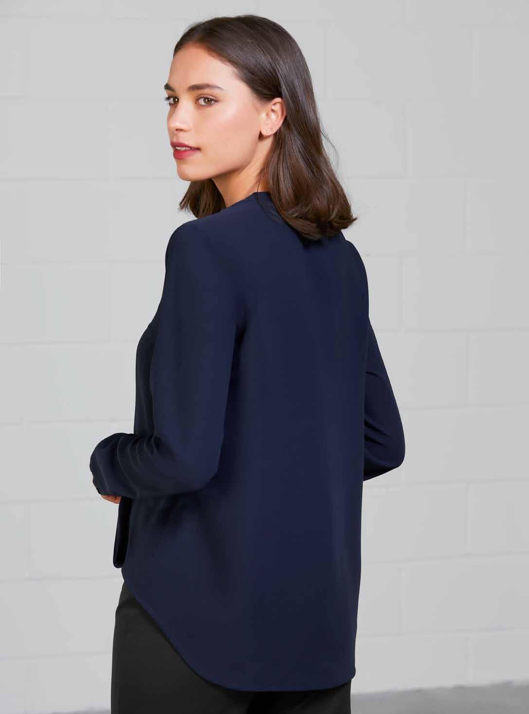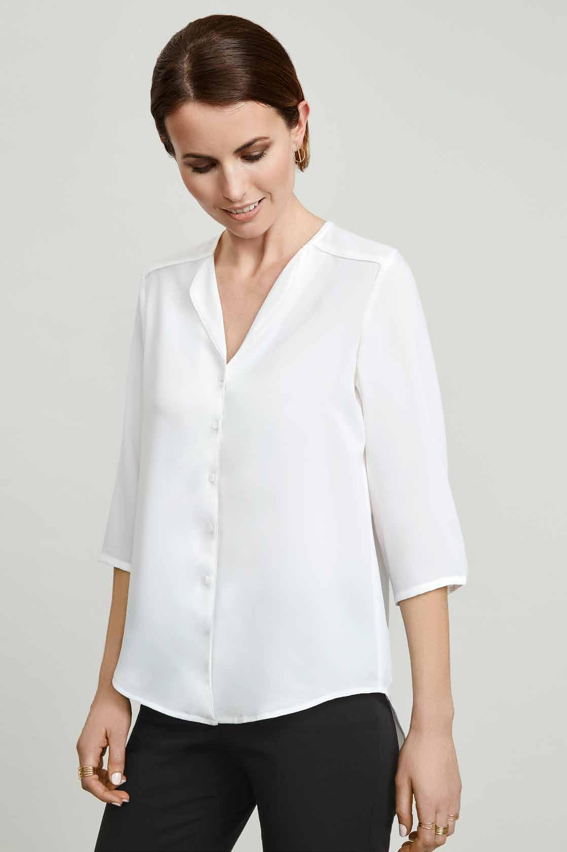 A classic collarless button-through tunic design for the stylish professional. Open notched neckline, action back pleat and front hip pockets delivers functional beauty at its best.