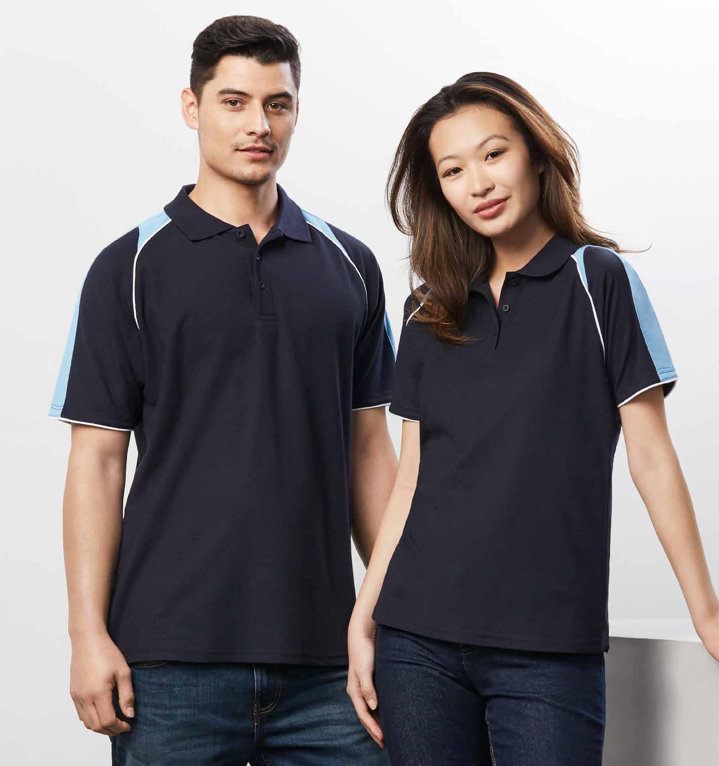 FEATURES Raglan sleeve polo with tonal piping • Tipped knitted collar and knitted cuff with single stripe • Womens style feature slimline 3 button placket • Mens style includes loose pocket
