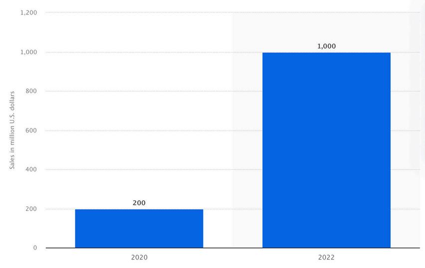 Figure 1: ‘Alo Yoga: Sales Income 2022’ 2025 Statista [online] Available at: https://wwwstatistacom/statistics/1536785/alo-yoga-sales/ [accessed 6 Mar 2025]