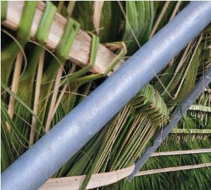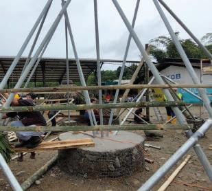 Alambre galvanizado amarrado en 8 para reforzar el tripode de caña.