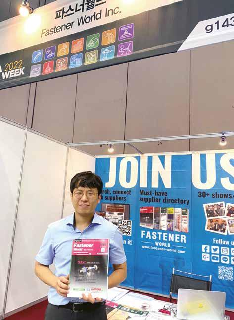 F astener World’s staff onsite reported that visitors were manufacturers, traders and academic institute personnel mostly from automotive, shipbuilding, electronics and other peripheral industries. Although South Korea highly relies on metal and industrial parts imported from China, quite a lot of visitors said Taiwanese fastener and industrial related products are also very attractive and wellrecognized for high quality. At the venue were a lot of visitors and exhibitors from fasteners, metal wires, forging, metal heat treatment and coating, automobile and machine parts, and hand tool industries.