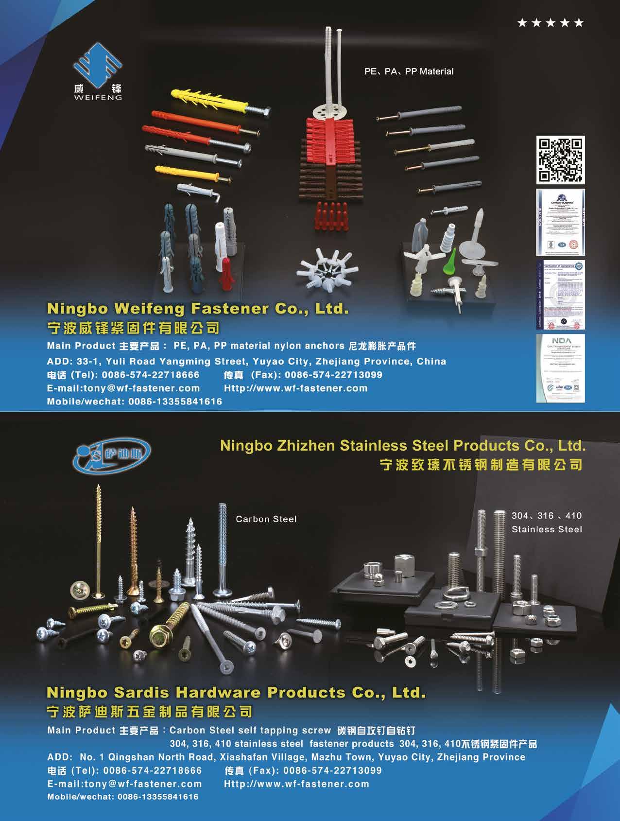 “In addition to the introduction of advanced production equipment and management model in the traditional processing lines, we have also completed the construction of automated production lines for furniture hollow wall anchors, and continue to prioritize quality and provide customers with the best service as the ultimate goal,” said General Manager Nick Wang.