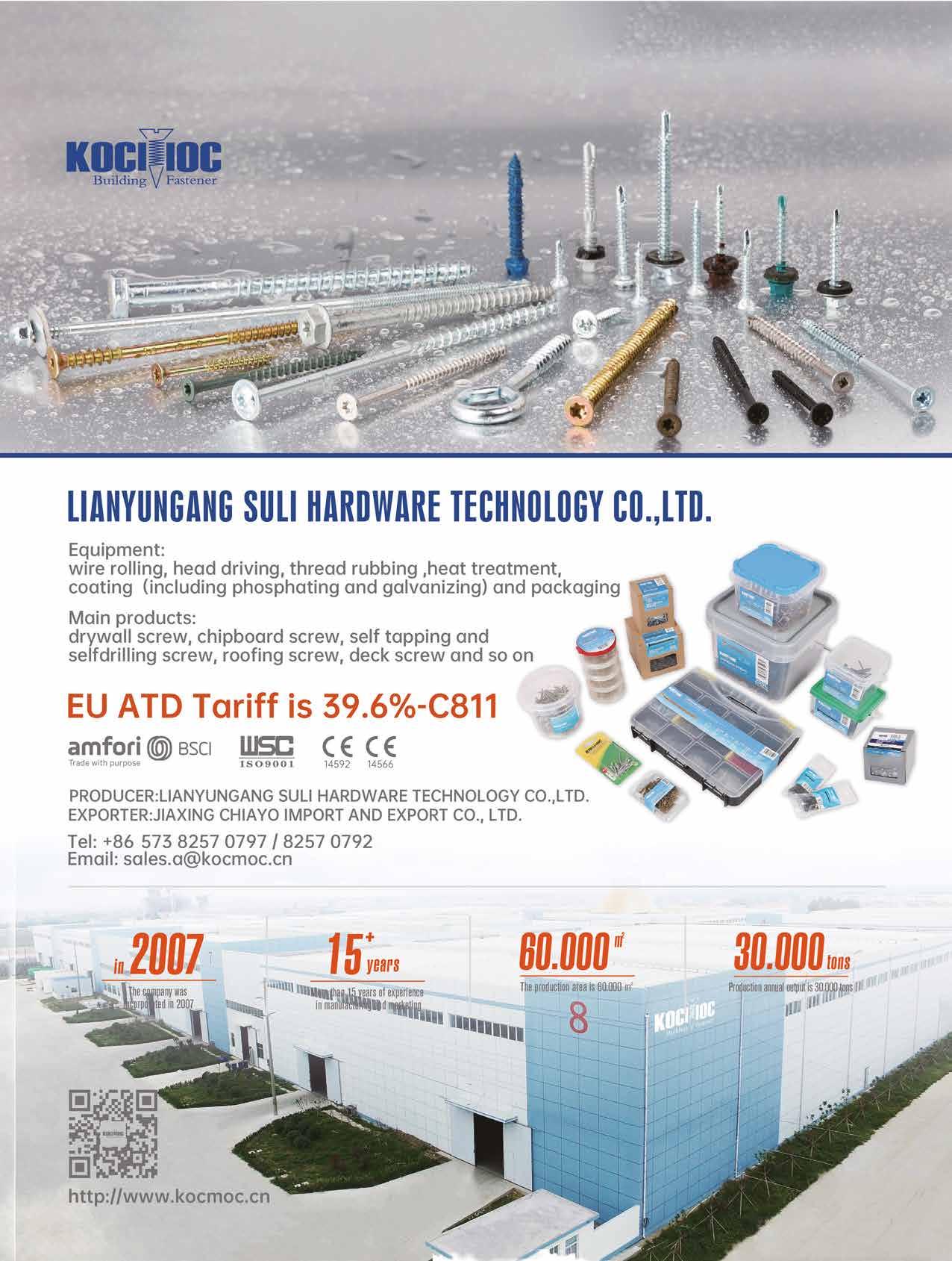 Founded in 2005, CHINFAST boasts two wholly-owned factories, namely Joystart Automotive Parts (Zhejiang) Co., Ltd. and Haiyan Yousun Enterprise Co., Ltd., with an export volume of 8,000 containers in 2023. Deeply rooted in the fastener industry, CHINFAST has established business relationships with more than 500 enterprises worldwide. To further strengthen its connection with the demands of first-tier retailers and distributors in Europe and the United States, CHINFAST Co., Ltd., which has been specializing in industrial fastener production for nearly 20 years, has actively expanded its business over the past five years. It has extended its business from the original focus on the manufacturing of multi-purpose wood screws, timber screw and decking screws to DIY fastener packaging services, aiming to create a new milestone for the sustainable development of the enterprise in the ever-changing global market.