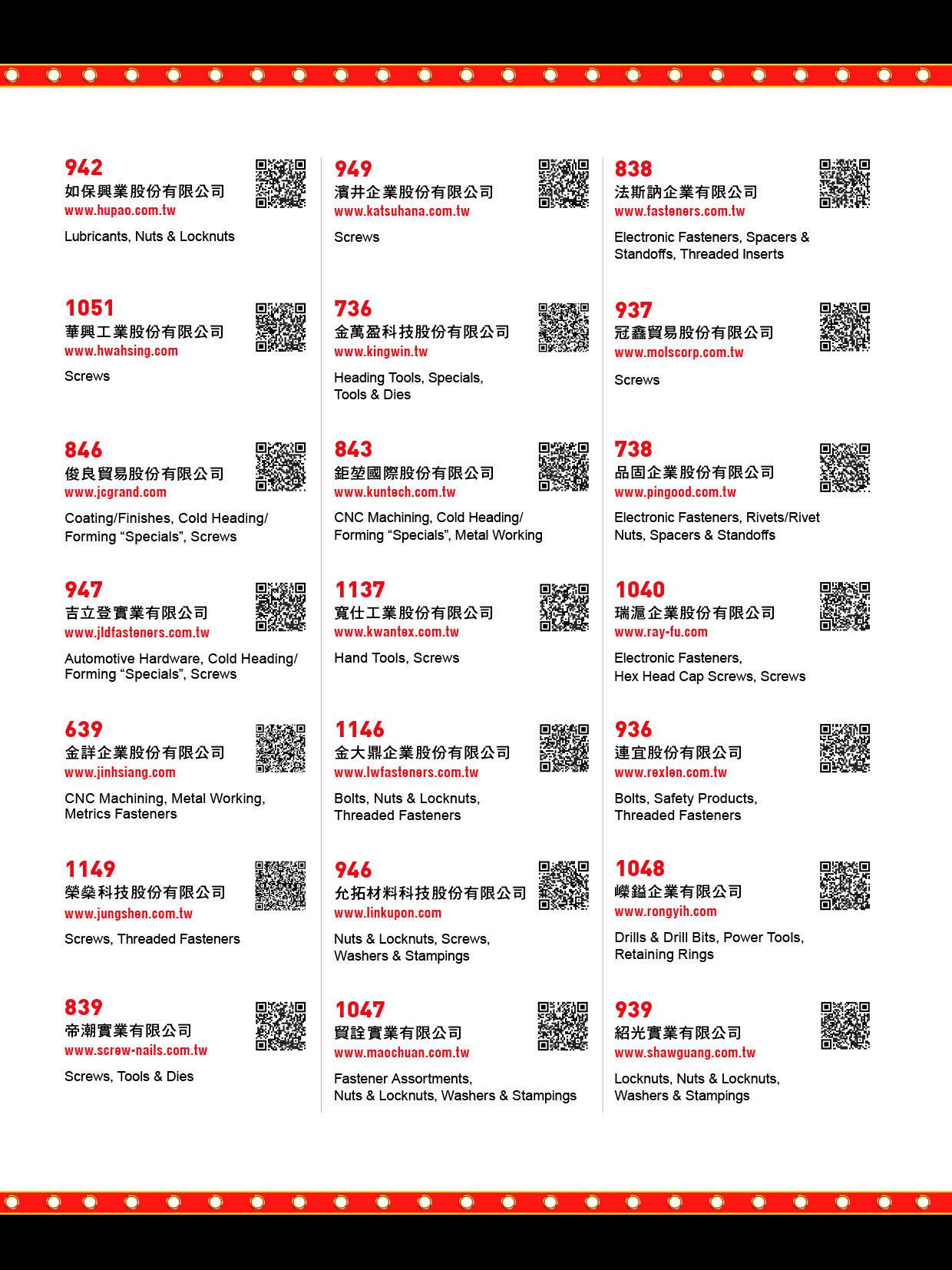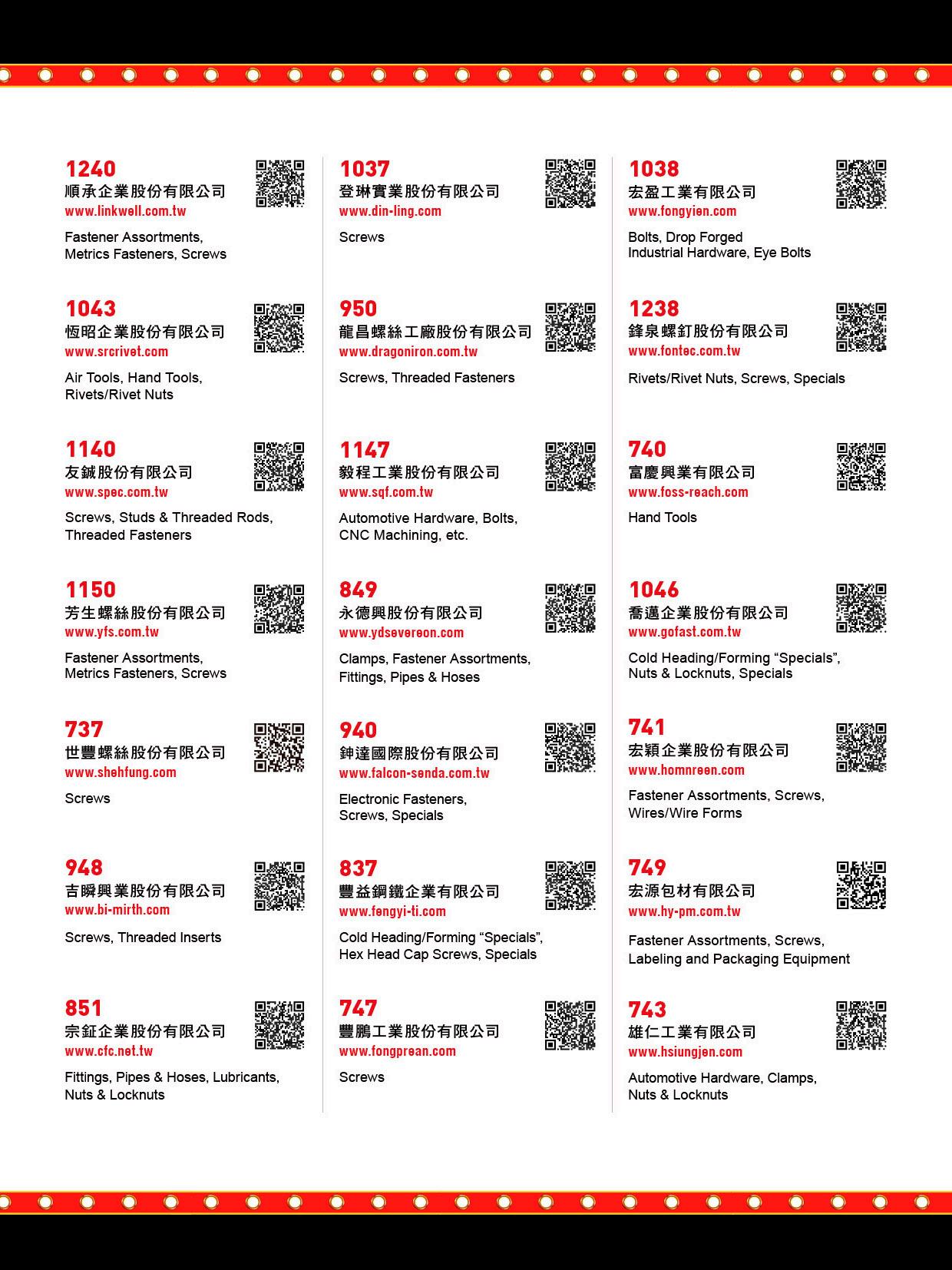 特別感謝歐洲扣件經銷 商協會副理事長 Gian Marco Dalpane、美國工業扣件協會 總經理 Daniel Walker 螺絲貿易協會理事長蔣國清與 會,並藉由分享其協會動態為知識共享做出貢獻。