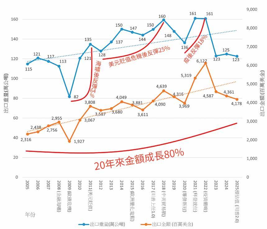 (附錄) 2025年1至4月扣件出口量價統計同期比 (來源:台灣螺絲公會)