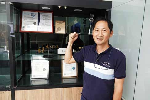 為求讓產品品質達到客戶難以挑剔的程度和提升工廠效率,鈺強 在機台的選擇和技術團隊的培養費了不少心力。廠內特別 選用日本 小型 CNC 機台一線品牌,其完整的功能和具高度彈性的參數設定 不只讓操作人員能完成精密度、耐用度和穩定度都高的產品,也可大 幅減少刀具損耗和替換次數,讓機台操作維護和時間管理上更加具效 率。另外,鈺強的 技術團隊皆具備至少 10-20 年的經驗,有能力 按照客戶的設計去繪製圖面和分析數據,進而選出最適合的刀具、方 式、材質和所需功能來進行加工。鈺強曾再生董事長表示 : 「我們高效 率的生產並非來自簡單按按機台上幾個按鈕而已,而是透過多位具數 十年經驗專業師傅在機台上決策出最正確合適的指令來具體實踐。畢 竟光是一項車牙就有 10 幾種方式能選擇,如果人員沒有充足的技術 知識和經驗加以配合絕對作不出來。」