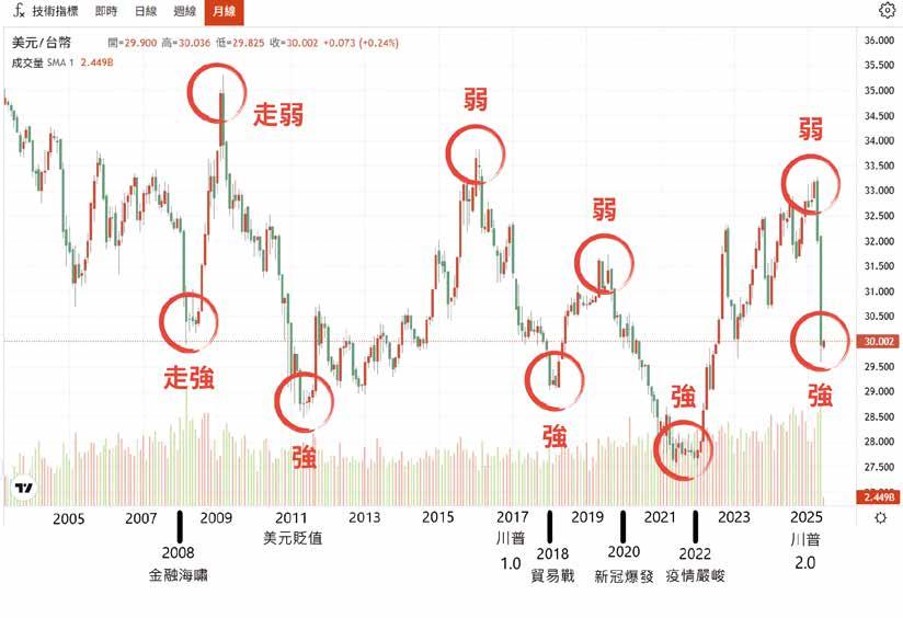 中鋼透過分析海外情資,說明川 普關稅對美國當地物價通膨的衝擊 在今年 5、6 月還尚未反映出來,預 測美國物價實質的升高可能發生在 7 至 8 月。在分析台幣匯率走勢時, 中鋼觀測到「180 天遠期外匯」匯率 已經來到 29.45 元,持續摜破 30 元 大關的狀態,因此中鋼預測 未來三個 月內台幣走強的機率較高,但走強到 28 元的機率將較 5 月初低。