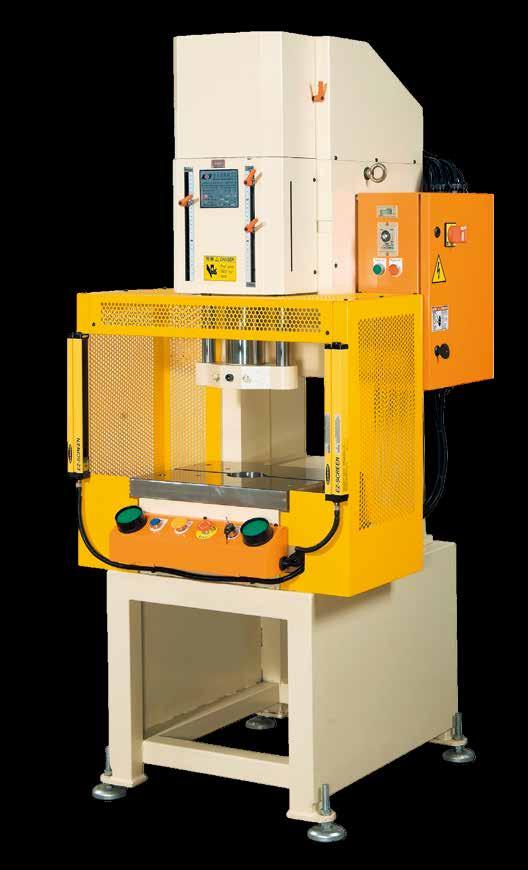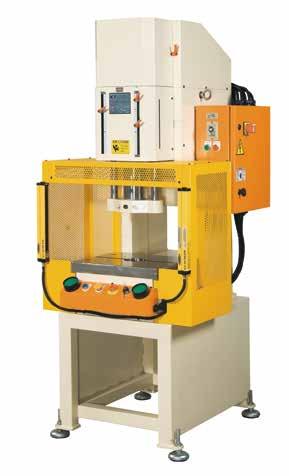 其中,油壓機實現以下優點包括:出力穩定、高度可調 整、行程與壓力可變、多段速度選擇、可調整保壓時間、適 合多樣化加工、壓力速度變化對模具衝擊小、模具壽命較長、 低運作噪音。金上源所開發全系列的油壓沖床搭載特殊油壓 系統與油壓缸,改善傳統油壓機速度慢的缺點,使馬達更節 能,壓力輸出更大。全機型皆配備壓力與行程控制,提供製 程選項。油溫冷卻裝置有效控制溫升改善漏油,油耗量僅為 傳統油壓機的三分之一,實現減碳。