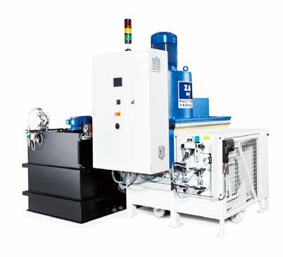 以油壓沖床為基礎,金上源延伸開發出轉盤式多工位油 壓沖床,適用於組立裝配扣件,可同時自動送料、組裝及沖 壓工件,並自動退出成品。防鬆螺帽壓點機則主打精密溫控 系統,控制液壓油溫於 33 至 36 度,避免環境影響油溫、壓 力輸出與產品良率,穩定壓製過程的壓力。