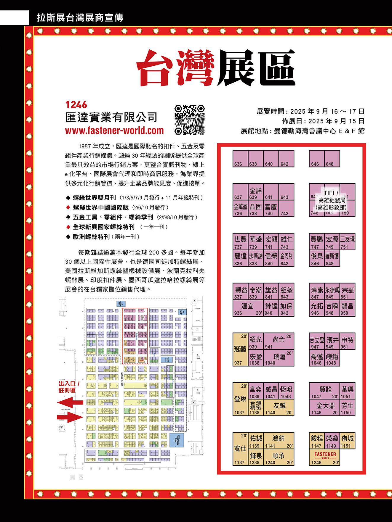 鎖定汽車與建築扣件需求 捷仂指出其美國顧客主要來自汽車與建築扣件業,川普的關稅 促使這些產業積極提升產能與降低成本。捷仂的高效能設備不僅能 倍增產量,還能降低人力、設備維護與能源消耗,幫助客戶提升每 單位利潤,強化市場競爭力。他們正積極尋找美國合作夥伴,希望 成為美國扣件業的得力助手。憑藉專利技術與品質,他們已獲多家 美國指標廠商採購,目標今年銷售達 10 台,顯示市場接受度提升。