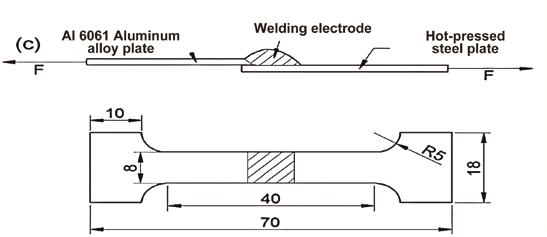 Cold metal transfer is a brand-new type of metal inert-gas welding and metal activegas welding. Compared with conventional counterparts, cold metal transfer has extremely low heat input and can weld plates as thin as 0.3 mm. It can also bond high strength steel plates with aluminum alloys. It has been applied to bonding Tesla’s EV thin plates. This bonding technology can gain accurate control, and has a fixed short-circuit transfer cycle that is not subject to random parameters. Cold metal transfer has literally zero electric currents and can effectively reduce splattering to give fine welding quality. Figure 7 illustrates cold metal transfer. Its mechanism is to weld one side of the aluminum alloy material (such as 6061 series) and bond with the steel material on the other side. The base material doesn’t melt and there is little deformation.