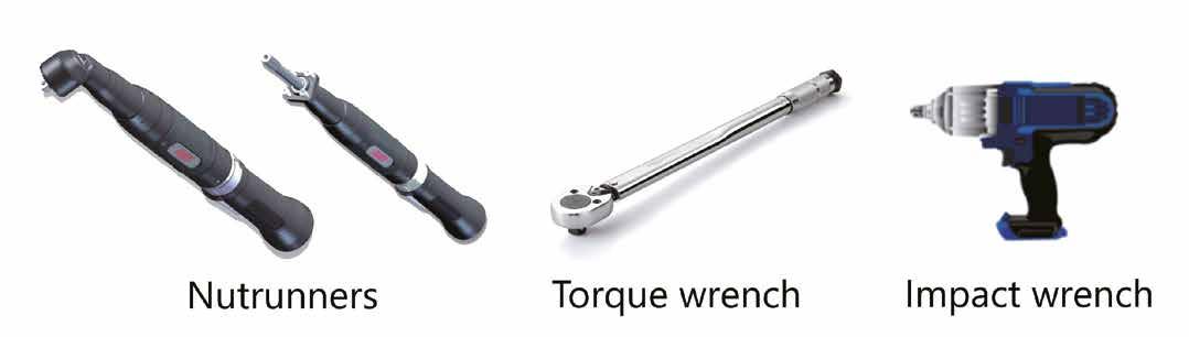 Torque wrenches are available in two categories: manual and torque angle. The manual wrench is the most common and is available in many styles: the basic style has a moveable arm against a scale, some have an adjustable spring that is calibrated to dial in a torque value to where the wrench produces a ‘click’ when the value has been reached, some have a dial gauge that measures and marks on and off-torque which can be read after torquing and another type that is electronic which translates data into a control module for error-proofing.