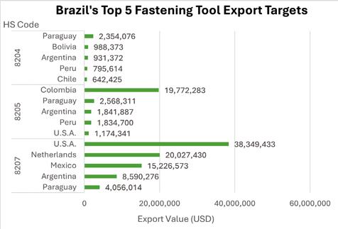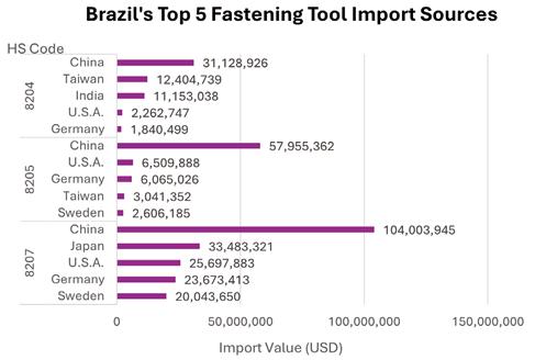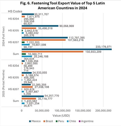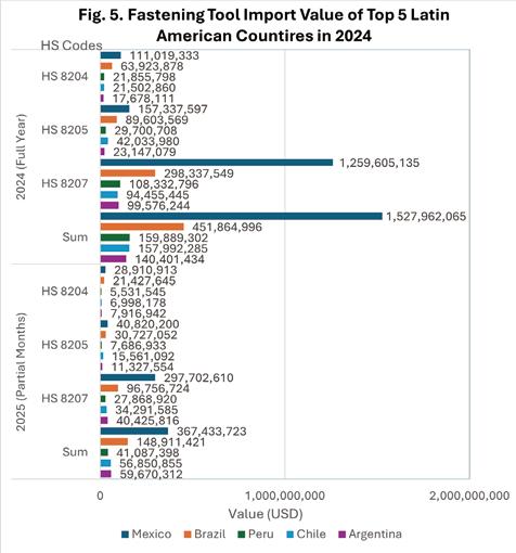 3. China held a significant market share in the Latin American fastening tool market. Against the backdrop of tense US-China relations and the uniform 50% tariffs imposed by the Trump administration on global steel and aluminum products, China is expected to accelerate expanding its market share to diversify market risks, thereby intensifying competition in the Latin American market.