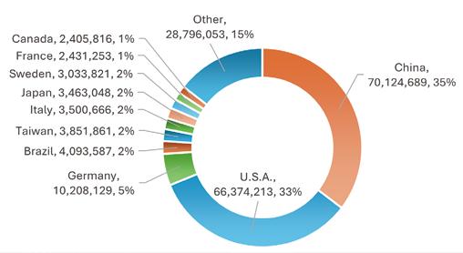 2. In category 8204, the gap between the United States and Taiwan was 26.8%; in category 8205, the gap between the United States and Brazil was 41.0%; in category 8207, the gap between Germany and Sweden was 9.3% (Sweden had a chance to surpass).