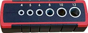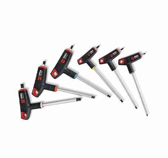 The ZEBRA T-handle wrenches are easy to work with. The asymmetric handle shape improves accessibility in tight spaces, while the concave hand rest on the twocomponent handle with its anti-slip surface ensures efficient power transfer and reduced fatigue during use. The rapid-turning zone with recessed grooves further increases versatility and speed while working. Colour coding and large symbols on both sides of the handle make it easier to identify the wrench size.