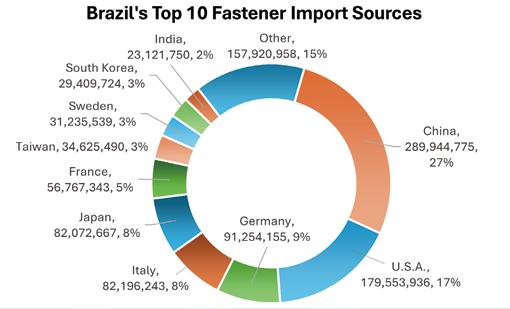 1 Argentina and the United States jointly dominated Brazil's fastener export market, each accounting for about 20%.