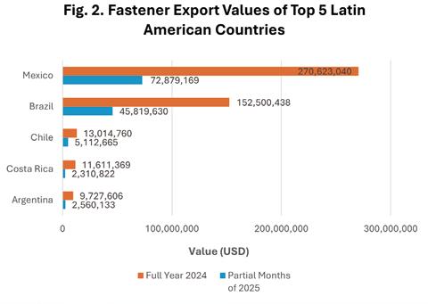 4. Mexico and Brazil were the top two countries in both the fastener and fastening tool markets in Latin America.