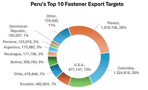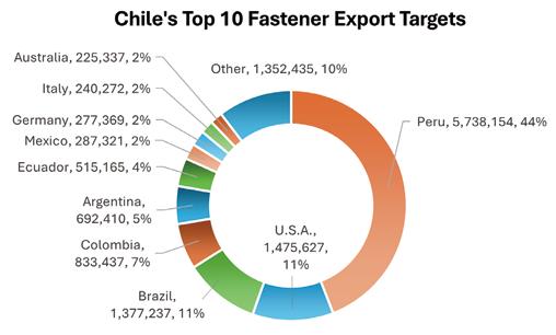 1. Peru dominated Chile’s fastener export market, accounting for as much as 44%.