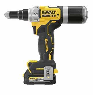 The DEWALT 20V MAX XR is a battery-operated rivet tool for setting blind rivets made of aluminium, steel and stainless steel. The cordless version DCF403 can set 800 rivets with a pulling force of up to 10 kilonewtons, while the DCF414 reaches 300 rivets with a single battery charge of up to 20 kilonewtons. Both feature a detachable riveting mandrel collector, integrated nosepiece storage, and allow for tool-free nosepiece changing. The ergonomically designed tools are designed for various applications.