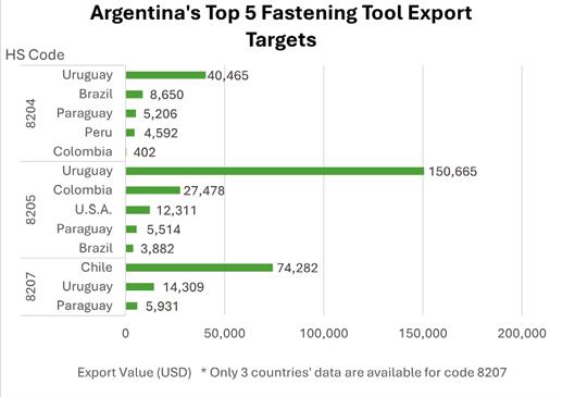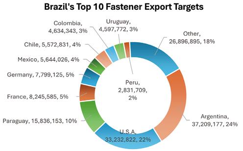 1. Brazil dominated Argentina's fastener export market, accounting for as much as 61%.