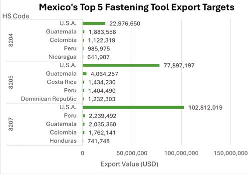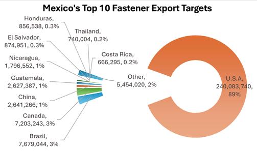 5. Mexico’s exports of fasteners and fastening tools were highly dependent on the United States.