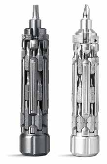 Inspired by science-fiction films, the Symtik S1 Boost EDC Screwdriver (Gatling), made from an aluminium alloy, stands out due to its structural design. Its material structure and the sandblasted, metallically shiny surface convey robustness and durability. The appropriate accessories are precisely integrated into the geometric shape. It is designed to be compact and practical, and is easy to transport. Vertical lines, protrusions and grooves highlight details of the futuristic aesthetics.