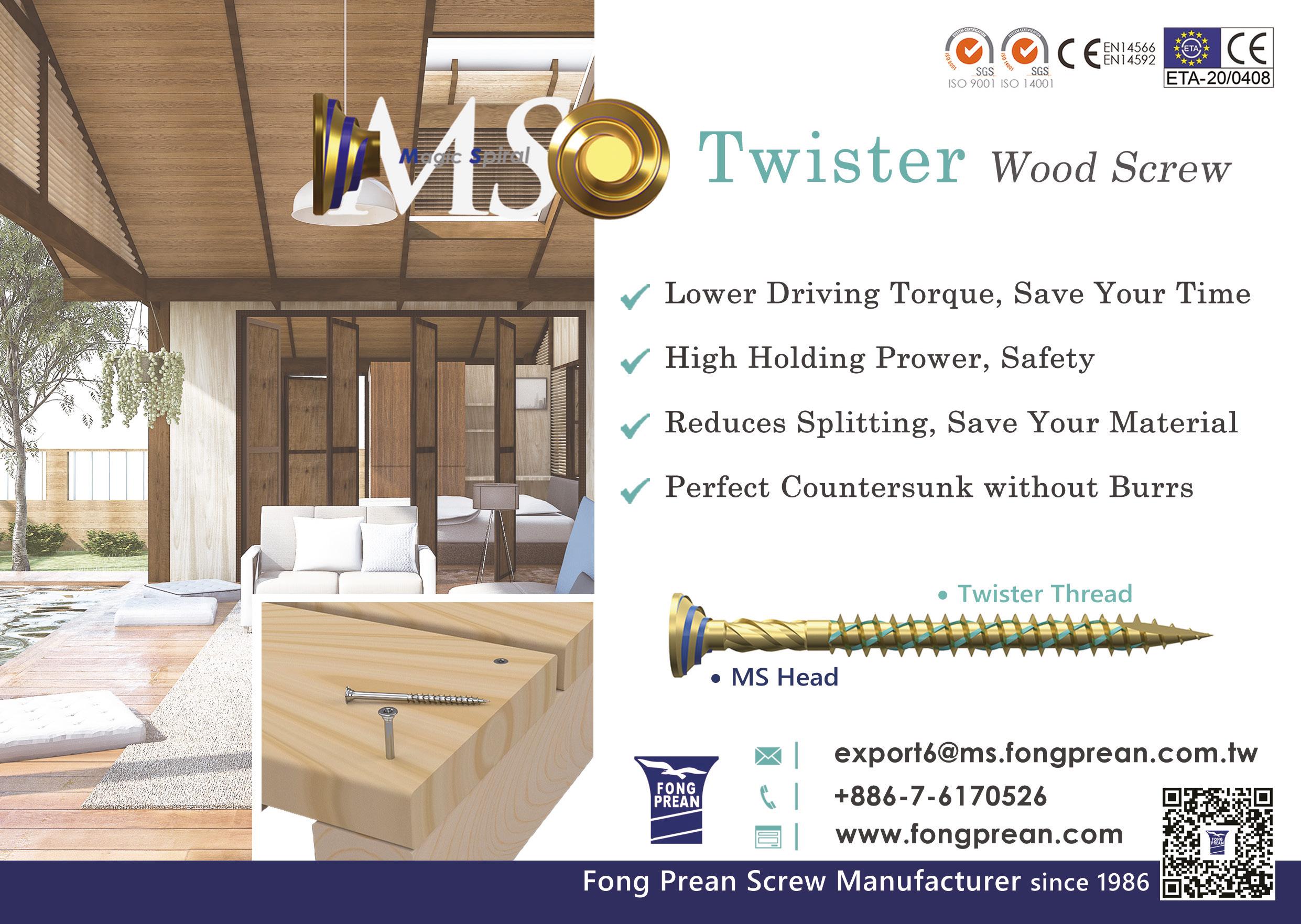 A durable and ecologically friendly woodscrew! The same bit for different diameters of woodscrews!