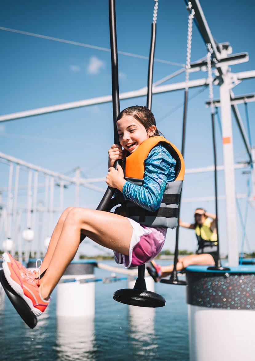 Imagine stepping into the ropes course. At first, you feel a healthy amount of respect for the challenge ahead – the thrill factor is definitely there. However, you master your fear and begin climbing from feature to feature. Your confidence grows and the feeling of accomplishment builds with each challenge mastered. And when you finally lose your grip … no worries, you simply fall into the water. That’s just another part of the fun!
