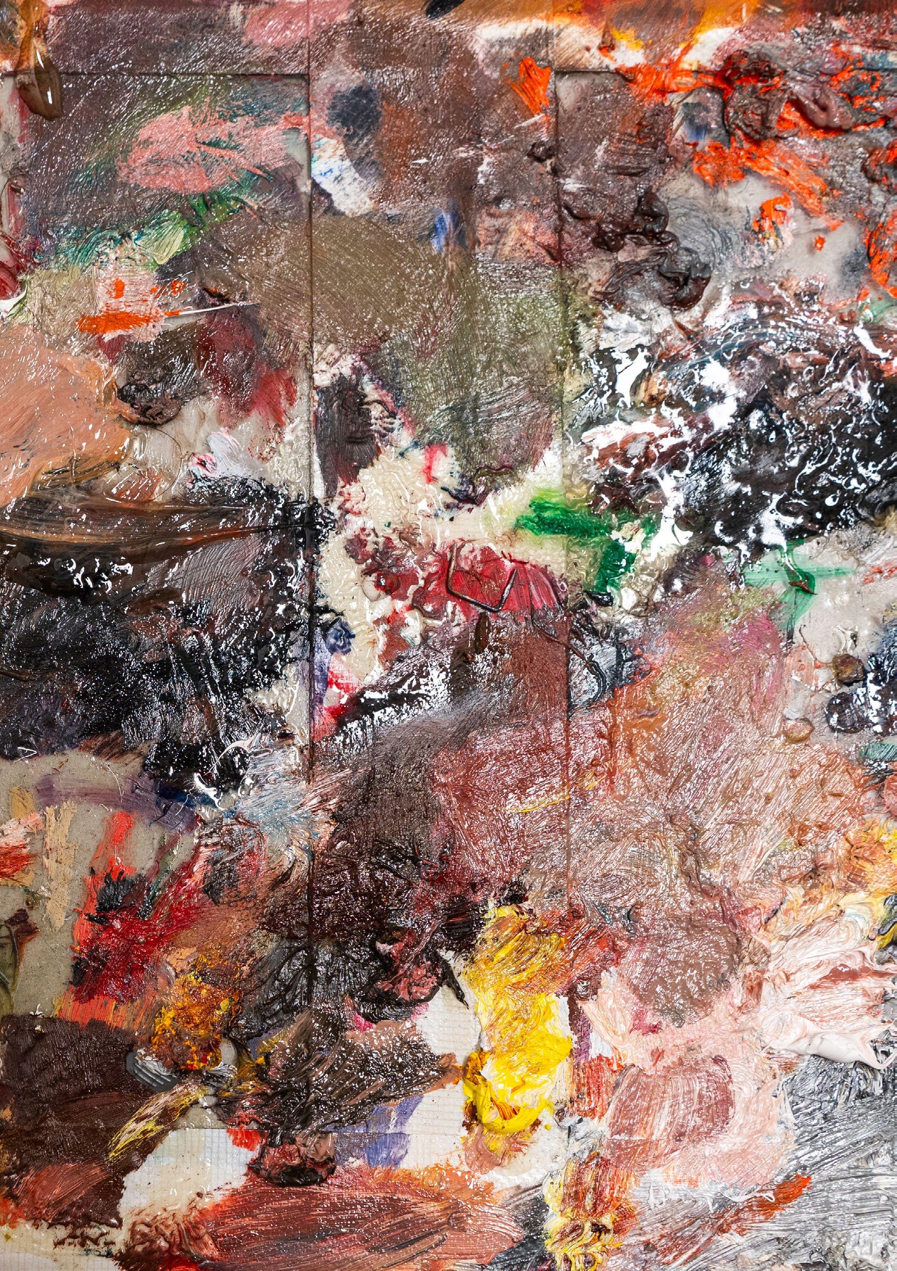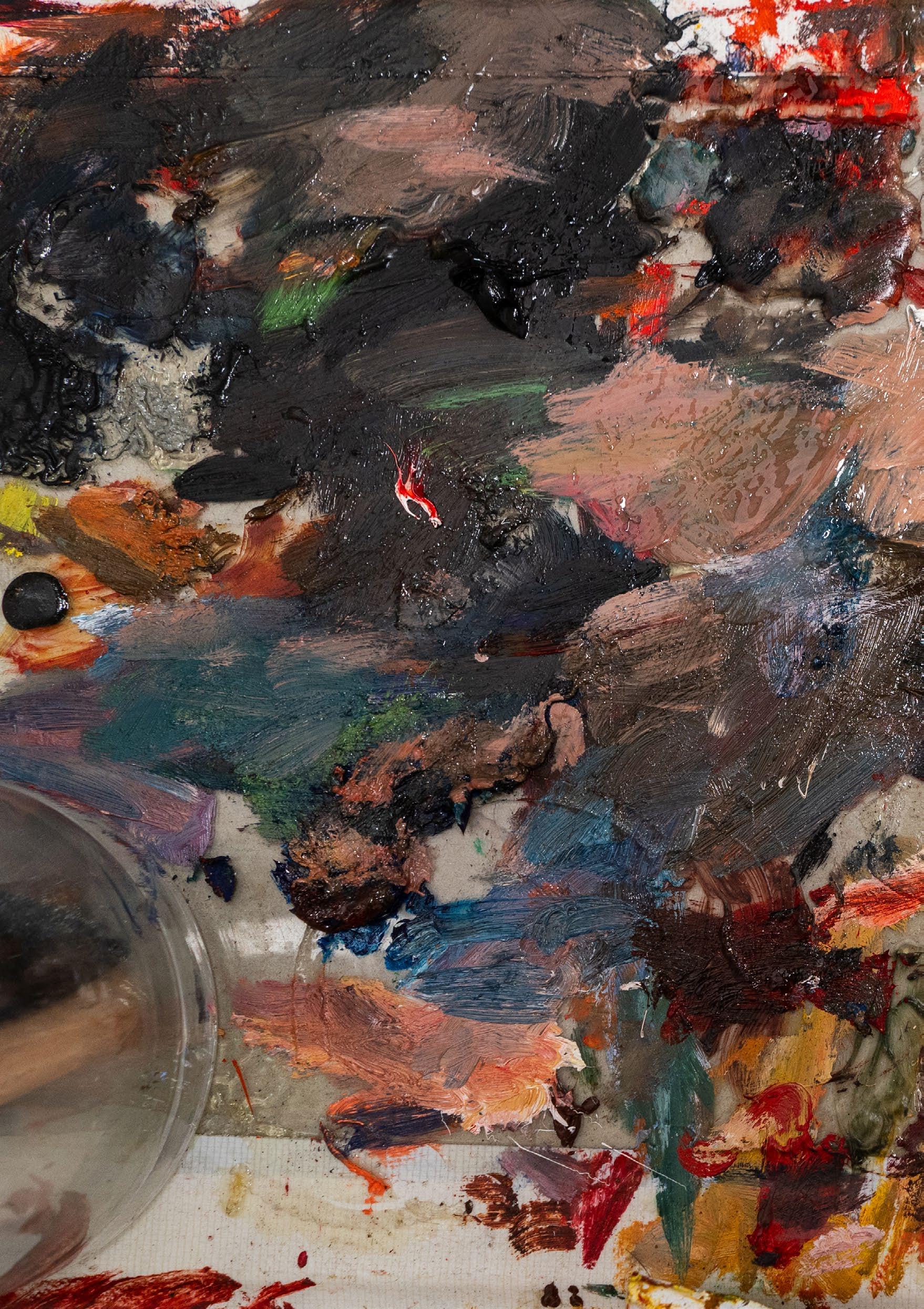Kate Kurucz also plays with figuration/abstraction in her work for the show, creating a narrative of the mysterious twins/strangers enemies/friends in her Bald Man Eclipse - and more abstract exploration of the fleshy viscerality that is possible with oil paint. I can see a tension of 2D/3D in this kind of figurative painting as well, especially with the materials of oil paint on copper that Kate uses to represent depth, light, contour and character on a flat surface.