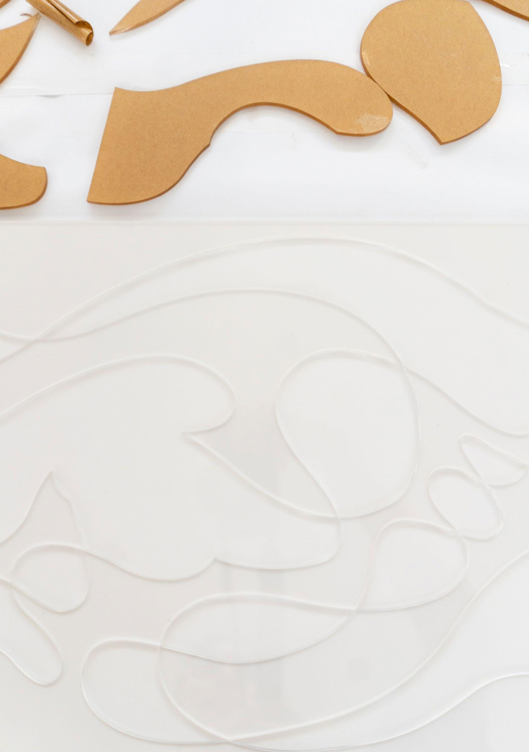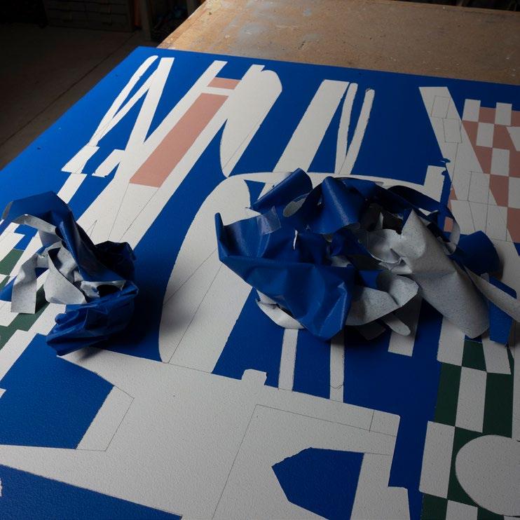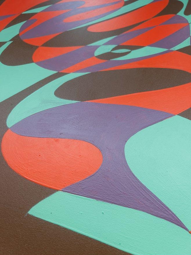 Michael Carney, Hari Koutlakis and myself all play with a balance and tension of digital/ physical with our work as well. Hari and I worked together to produce some lasercut acrylic versions of his graphic paintings, contrasting his usual approach to painting which is extremely analogue. Michael and my work are using AI generated imagery as a part of our process, him to generate landscape and me to generate abstract imagery based on other abstract objects I created.