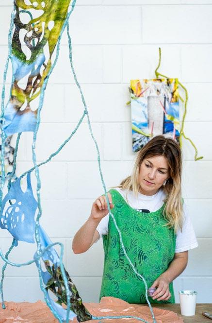 Form/Function is part of Henry Jock Walker re-purposing wetsuits into paintings, and Matt Fortrose using playground softfall inside of his hard concrete and steel sculptures.