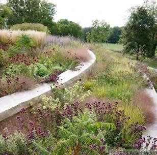 With planting layers of groundcover, herbacuous perennials, shrubs and canopy towards the edges.